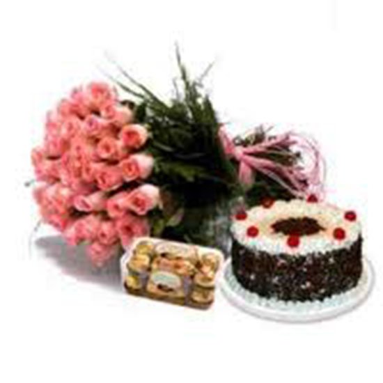 cake combo # 4Made from the finest melting chocolate and dairy cream set on a chocolate base and topped with whipped cream and chocolate bits.