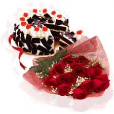 dozen roses w/cake1dozen roses w/ black forest cake