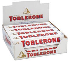 12 x Toblerone White 100 g.Delicious Swiss Toblerone, white chocolate with honey and almond nougat. Contains: 12 x Toblerone White 50 g.