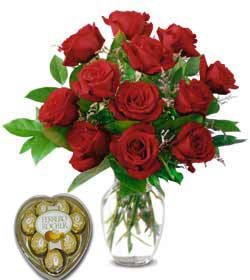 1 Dozen + Ferrero Heart1 Dozen Rose Vase With Ferrero Heart