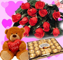 Cute SmileBunch of 12 Red Roses and 9 Inches Teddy Bear m I love you pillow and 24 Ferrero rocher.