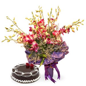 Orchids With Cake20 purple orchids with chocolate cake