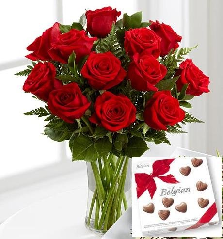 The Sweetest Romances Bloom12 RED ROSES IN A VASE 100 G BELGIAN CHOCOLATES