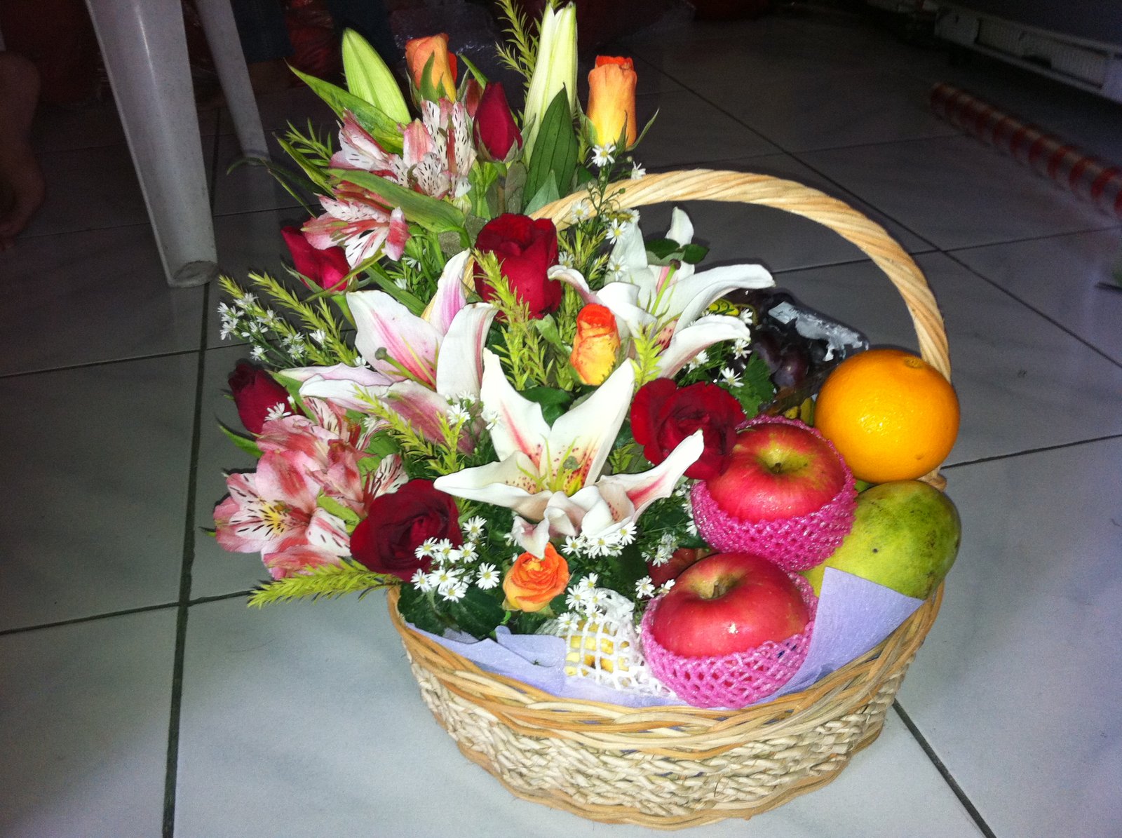 Father's day special6 items fruit basket with flowers for your dad.
