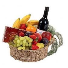6 items Fresh Fruit Basket w/ Sparkling juice & chocolate boxAs shown in the pic.N0TE: FRUITS ITEMS MAY VARY ..DEPEND ON TH AVAILABILITY