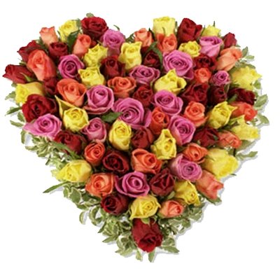 101 Mix colorSend this wonderfull Heartshape Arrangement of 101 Mix color Roses to your loved ones in PHILIPPINES and heighten their celebration.red pink yellow orange pomelo peach