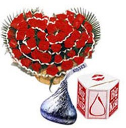 For My Sweetie Pie...Click a smile on the face of your sweetheart with this big kisses chocolate and heart shape 36 red roses.