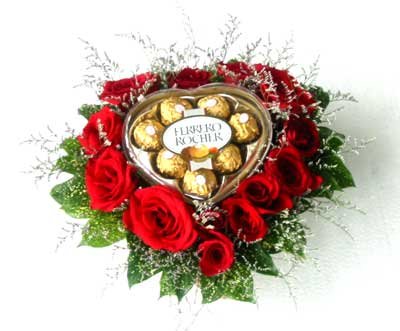Love flowers24 red roses in heart shape with Ferrero heart chocolate.