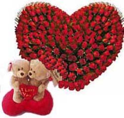 Miss You Soooo Much...A beary cute way to let your beloved/ friends/ near ones know how much he/ she is missed. (3 dozen red roses and couple bear).