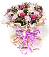 Colorful Feelings6 pink carnations, 6 purple carnations, 6 carnations with lily and green foliages