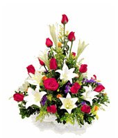 I Wish You HappinessTwelve stems red roses, ten stalks white lilies, nine red carnations, flower baskets arrangement The picture is only for reference and the main items are the same, the effect is guaranteed.