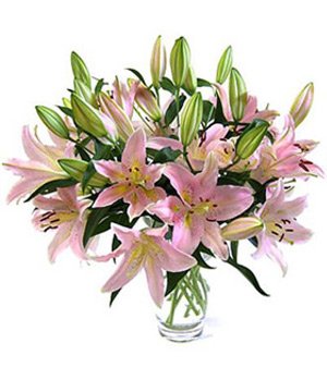 Miss You10 stalks perfume pink lilies arrange in a exquisite vase(vase included).
