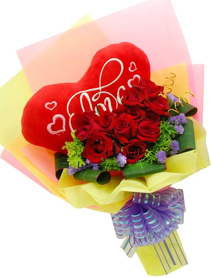12 Delux Hand BouquetLove Pillow with 12 stalks red roses.