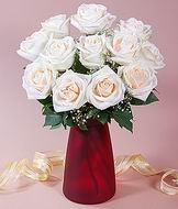 Best Wishes !Wish your friend/ loved one a wonderful day with this 12 white roses arranged beautifully in a glass vase.