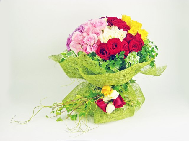 6 Red + 6 Peach + 6 white + 6 yellow6 Red 6 Peach 6 white 6 yellow roses Bunch.