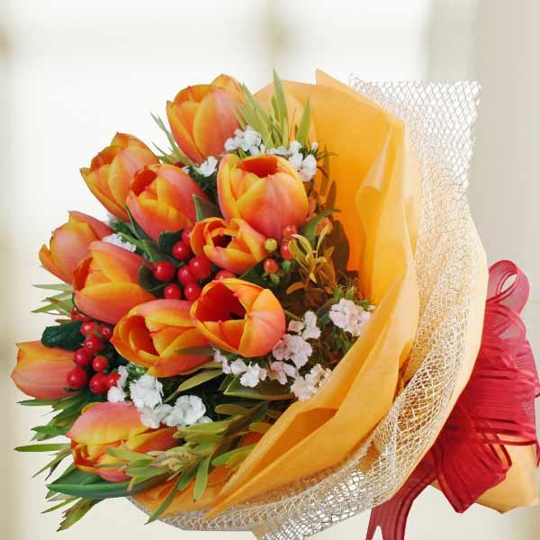 10 Tulips Hand Bouquet10 Orange Tulips Hand Bouquet